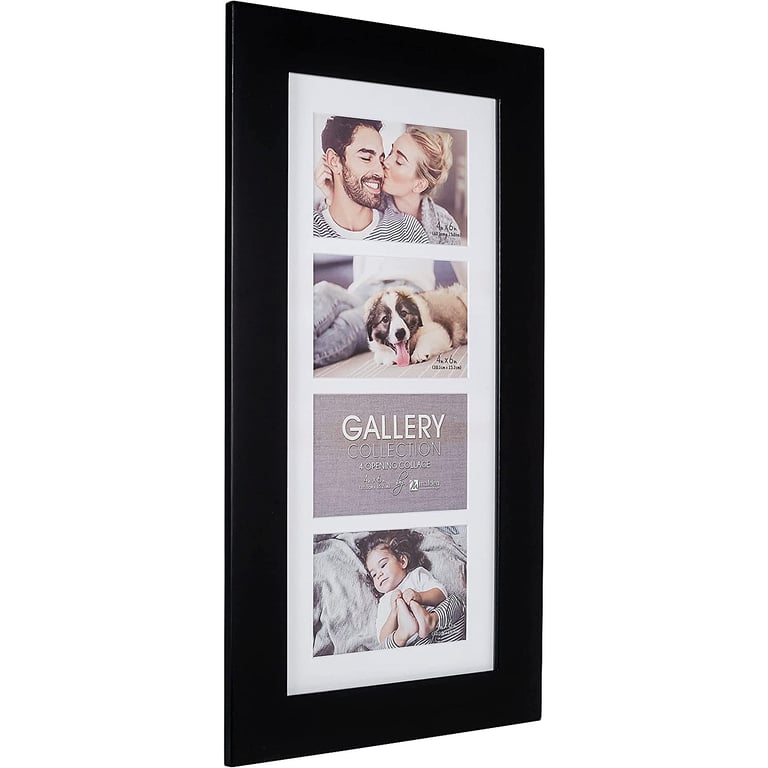 Main view Product Details Malden Designs® Black MANHATTAN collage displays (4) 4x6 photos — STYLISH DESIGN: Add a touch of classic style to any space with this bevel matted photo frame; this beautiful black frame is the perfect way to display your treasured family photos; the frame holds four (4) 4” x 6” photos behind the mat. Mat display openings are 3.5“x 5.5” PREMIUM QUALITY MATERIALS: The frame is constructed of quality MDF wood; thanks to it’s built in hardware this frame will easily hang on any wall; the frame includes a durable glass front that will protect and showcase your beautiful photos for years to come MODERN LOOK: Simple to load with swing tabs and removable back panel; celebrate your precious memories with Malden International Designs Black Manhattan Photo Frame; product dimensions: approximately 11.125” (W) x 21.125” (H) x 0.59” (D) PERFECT FOR EVERY APPLICATION: Showcase your treasured photos with the Black Manhattan Four Opening 4x6 Bevel Matted Photo Frame; attractive design, perfect for any home or the office, this frame is guaranteed to add new life to your space; the perfect gift! SECURE PACKAGING: Shipped in secure padded packaging for corner-to-corner protection Crafted by Malden Design®. Black MANHATTAN collage displays (4) 4x6 photos Model #096287175876 List $28.00 You pay $22.95 This item is currently out of stock and we do not have an expected date at the present time. click here to be automatically notified when it comes back in stock or email merchandising@sendaframe.com for availability information. You can place this item in your shopping cart. It will be added to the 'saved for later' section. Your Price Match is Active Your request for a price of $0.00 for a minimum quantity of has been accepted. You have [time] left to purchase this item for $0.00 instead of $22.95 each. Find a Lower Price? We BEAT All Authorized Retailers [?] FEATURESDisplays:4"x6"Material:Wood (mdf/engineered)Finish:BlackOccasion:Business & office, Home decorating, Celebrating TravelsStyle:Architectural, ContemporaryOrientation:BothBrand:Malden Designs®Display Type:Wall Only Approx. Overall Dimensions:11 1/8"x21 1/8"x5/8" This item ships in its own box SHARE THIS ITEM Share on Facebook
