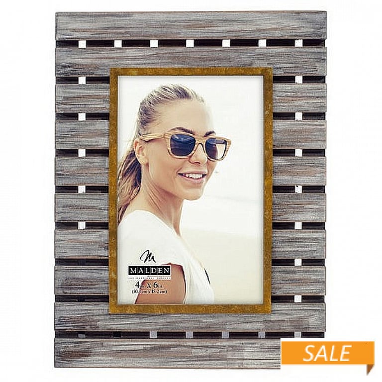 Main view Product Details Malden Designs® PLANKS Natural 4x6 frame by Malden® — Wood slats with rustic metallic borders. Distressed style PLANKS displays a 4"x6" print. Glare resistant glass lens. Dual easel back. Crafted by Malden Designs®. PLANKS Natural 4x6 frame by Malden® Malden Designs® HOLIDAY CELEBRATION Savings - ends SundayBuy More / Save More * Add this item to your cart for the full details of this promotion. Conditions may apply. Model #096287149570 List $19.50 You pay $9.90 In stock Can be shipped today [?] Your Price Match is Active Your request for a price of $0.00 for a minimum quantity of has been accepted. You have [time] left to purchase this item for $0.00 instead of $9.90 each. Find a Lower Price? We BEAT All Authorized Retailers [?] FEATURESDisplays:4"x6"Material:Wood (mdf/engineered)Finish:Brown, NaturalOccasion:Business & office, Celebrating Travels, Friendship, Good luck, Home decorating, Teacher gifts, Team & coach gifts, Thank-Motivate-RewardStyle:Antique, Distressed - Weathered, Rustic/LodgeOrientation:BothBrand:Malden Designs®Display Type:Desktop or Wall This item ships in its own box SHARE THIS ITEM Share on Facebook