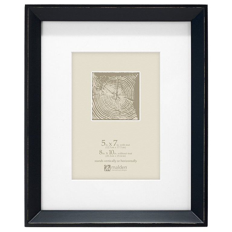 Product Details Malden Designs® Ebony-Black SCRATCH MORGAN 8x10/5x7 by Malden® — A gorgeous hardwood frame with lovely rustic motif moulding. Especially designed for your photo where the theme of the room tends to be casual.A finely grained selection of walnut is stained this deep black. Displays an 8"x10" print without its mat; a 5"x7" print with mat.Glare resistant glass lens. Easel back for landscape or portrait table-top display.Crafted by Malden Design®. Ebony-Black SCRATCH MORGAN 8x10/5x7 by Malden® Malden Designs® HOLIDAY CELEBRATION Savings - ends SundayBuy More / Save More * Add this item to your cart for the full details of this promotion. Conditions may apply. Model #096287138222 List $17.50 You pay $13.95 In stock Ships next business day [?] Your Price Match is Active Your request for a price of $0.00 for a minimum quantity of has been accepted. You have [time] left to purchase this item for $0.00 instead of $13.95 each. Find a Lower Price? We BEAT All Authorized Retailers [?] FEATURESDisplays:5"x7"Material:Wood (mdf/engineered)Finish:BlackOccasion:Business & office, Home decorating, Teacher gifts, Celebrating TravelsStyle:Rustic/Lodge, Traditional, Distressed - WeatheredOrientation:BothBrand:Malden Designs®Display Type:Desktop or Wall This item ships in its own box SHARE THIS ITEM Share on Facebook