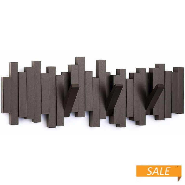 Main view Catalog image Product Details Umbra® Design The Original STICKS Espresso Wood Wall-Mount Coat Rack with 5-Hooks by Umbra® — The STICKS multi-hook coat rack by Umbra® boasts a clever design: each hook can be flipped up when not in use, slipping neatly into a groove in the rack for a sleek look and space-saving functionality. Constructed of molded wood with an espresso brown finish, STICKS features five sturdy hooks that flip up when not in use, creating a clean, seamless profile that's great for tight spaces or minimalist decor styles. Unit measures 18"x7¼"x1¼"; concealed mounting hardware is included. Designed by Luciano Lorenzatti for Umbra® - the worldwide leader in casual, contemporary and affordable design for the home. To view the entire collection, click: Umbra® designs The Original STICKS Espresso Wood Wall-Mount Coat Rack with 5-Hooks by Umbra® Model #028295228404 List $60.00 You pay $39.90 In stock Can be shipped today [?] Your Price Match is Active Your request for a price of $0.00 for a minimum quantity of has been accepted. You have [time] left to purchase this item for $0.00 instead of $39.90 each. Find a Lower Price? We BEAT All Authorized Retailers [?] FEATURESMaterial:Wood (mdf/engineered)Finish:BrownOccasion:Business & office, Home decorating, Housewarming, Back to SchoolStyle:Architectural, College Dorm, Contemporary, Minimal, Teens & tweens, Words & whimsyBrand:Umbra® DesignDisplay Type:Wall Only Approx. Overall Dimensions:18"x7 3/16"x1 3/16" This item ships in its own box SHARE THIS ITEM Share on Facebook