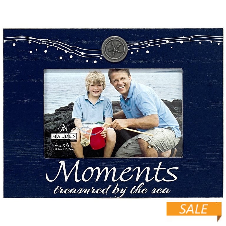 Product Details Malden Designs® MOMENTS Treasured by the Sea<br>Distressed Wood Frame Sign by Malden® — MOMENTS Treasured by the Sea is painted in weathered pastels on select grained hardwoods. Designed and produced by Malden®, this sign frame box will certainly be a conversation starter in a casual room setting. Wall mounts included for easy hanging. Malden® is a leader in unique décor for every home and work environment. SendAFrame stocks the entire Malden® photo frame line. To view the entire collection, click Malden Collection at SendAFrame. MOMENTS Treasured by the Sea Distressed Wood Frame Sign by Malden® Model #096287137294 List $15.00 You pay $7.90 In stock Ships next business day [?] Your Price Match is Active Your request for a price of $0.00 for a minimum quantity of has been accepted. You have [time] left to purchase this item for $0.00 instead of $7.90 each. Find a Lower Price? We BEAT All Authorized Retailers [?] FEATURESDisplays:4"x6"Material:Wood (mdf/engineered)Finish:BlueOccasion:Friendship, Good luck, Weekend Host Gifts, Housewarming, InspirationalStyle:Antique, Contemporary, Pop Culture, Rustic/Lodge, Shabby Chic, Sports & leisure, Words & whimsy, Distressed - Weathered, Coastal, Nautical & Shore, Sentiments | ready madeOrientation:Horizontal OnlyBrand:Malden Designs®Display Type:Wall Only Approx. Overall Dimensions:7"x9"x3/4" This item ships in its own box SHARE THIS ITEM Share on Facebook