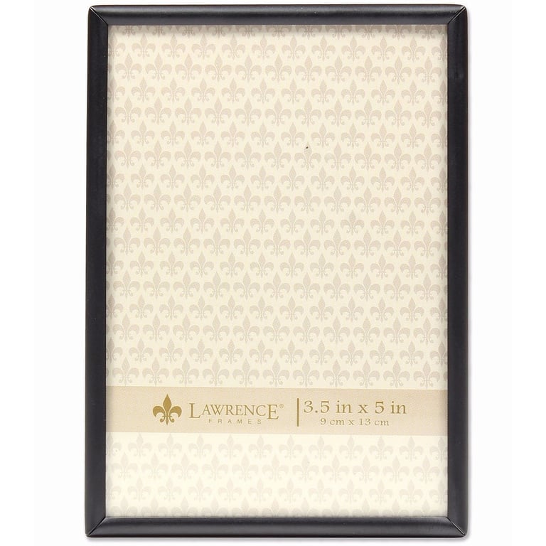 Main view Product Details Lawrence Frames® Matte SIMPLY BLACK Aluminum 3.5x5 frame — More a table accessory than a frame, the narrow border and clean lines makes a very minimalist statement.The style has a beautiful dual easel back for either portrait or landscape display. Wall mount for easy hanging. Glare resistant glass lens. Black moulding edge is ½" all-around. By Lawrence®, fine frames for generations. Matte SIMPLY BLACK Aluminum 3.5x5 frame Model #751148070010 List $17.00 You pay $12.95 This item IS in stock and can be expected to ship 01/21/2026 Your Price Match is Active Your request for a price of $0.00 for a minimum quantity of has been accepted. You have [time] left to purchase this item for $0.00 instead of $12.95 each. Find a Lower Price? We BEAT All Authorized Retailers [?] FEATURESDisplays:3.50"x5"Material:AluminumFinish:BlackOccasion:Anniversary, Birthday, Good luck, Mother`s Day, Retirement, Romantic, Teacher gifts, Thank-Motivate-Reward, Celebrating Travels, Wedding, Business & office, Corporate gifts, Home decorating, Team & coach giftsStyle:Classic, Minimal, Traditional, Contemporary, Sophisticated, RomanticOrientation:BothBrand:Lawrence Frames®Display Type:Desktop or Wall This item ships in its own box SHARE THIS ITEM Share on Facebook