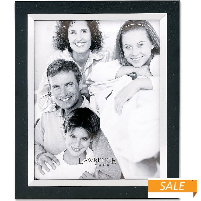 Product Details Lawrence Frames® STRATFORD Ebony-Black w/brushed aluminum inlay by Lawrence® — Hardwood frame in black ebony furniture finish is detailed with a modern aluminum accent.Glare resistant glass lens. Nice hardboard back easel for both horizontal and vertical tabletop use. Recessed wall hooks also attached for easy hanging.Personalizing available: Click on Personalize this item for details.Edge measures 1½" wide.From Lawrence®, fine frames for generations. FeaturesPersonalizing available: Click on Personalize this item for details. STRATFORD Ebony-Black w/brushed aluminum inlay by Lawrence® Model #751148056724 List $24.50 You pay $14.90 In stock Ships next business day [?] Your Price Match is Active Your request for a price of $0.00 for a minimum quantity of has been accepted. You have [time] left to purchase this item for $0.00 instead of $14.90 each. Find a Lower Price? We BEAT All Authorized Retailers [?] FEATURESDisplays:8"x10"Material:Wood (full grain)Finish:Black, SilverOccasion:Business & office, Congratulations, Employee honors, Home decorating, Housewarming, Thank-Motivate-RewardStyle:Contemporary, SophisticatedOrientation:BothBrand:Lawrence Frames®Display Type:Desktop or Wall Approx. Overall Dimensions:9 7/8"x11 7/8"x3/4" This item ships in its own box SHARE THIS ITEM Share on Facebook