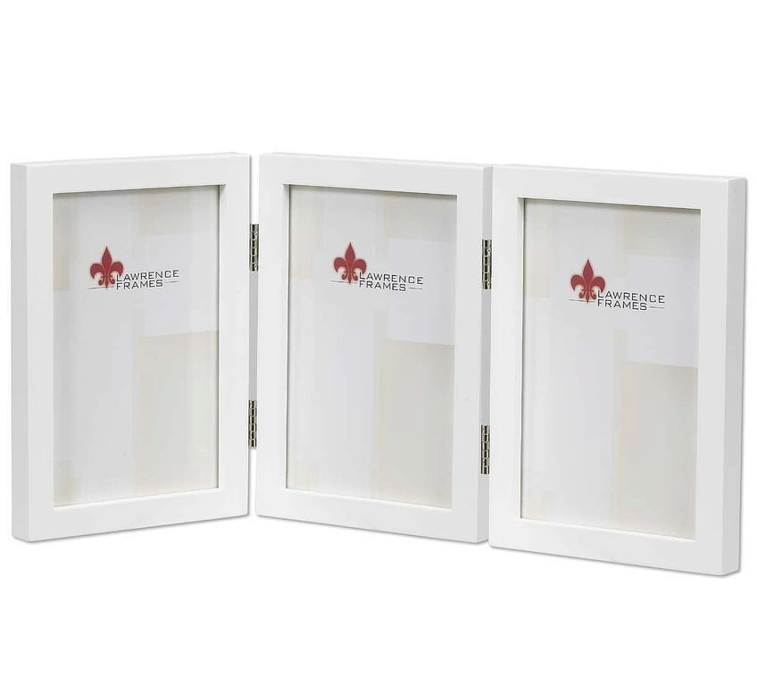 Main view Product Details Lawrence Frames® WHITE hinged triple in 5x7 size — Very nicely crafted with select hardwoods, tailored square corners and quality hinges.Frame edge is a very contemporary ½" all-around.Individual sections have black hardboard backs with swivel security tabs that easily open/lock to insert your prints.Glare resistant glass lenses. By Lawrence® WHITE hinged triple in 5x7 size Model #751148061872 List $47.00 You pay $34.95 This item is currently out of stock and we do not have an expected date at the present time. click here to be automatically notified when it comes back in stock or email merchandising@sendaframe.com for availability information. You can place this item in your shopping cart. It will be added to the 'saved for later' section. Your Price Match is Active Your request for a price of $0.00 for a minimum quantity of has been accepted. You have [time] left to purchase this item for $0.00 instead of $34.95 each. Find a Lower Price? We BEAT All Authorized Retailers [?] FEATURESDisplays:5"x7"Material:Wood (full grain)Occasion:Birthday, Business & office, Corporate gifts, Friendship, Housewarming, Teacher gifts, Team & coach gifts, Thank-Motivate-Reward, Celebrating TravelsStyle:Classic, Contemporary, Traditional, MinimalOrientation:Vertical OnlyBrand:Lawrence Frames®Display Type:Desktop or Wall This item ships in its own box SHARE THIS ITEM Share on Facebook