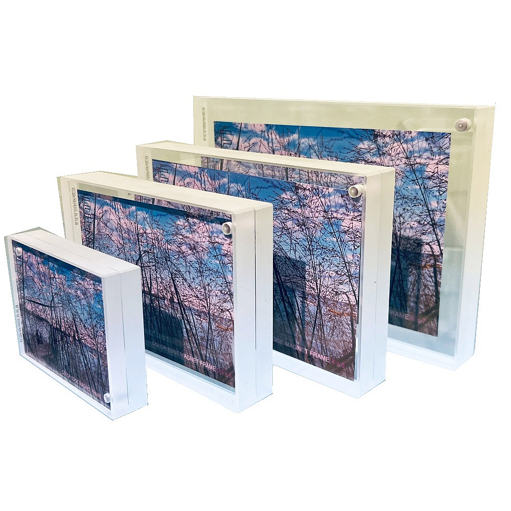 Luxe quality "Magnet" is the original made in ultra-clear virgin acrylic, here with a frosted edge. Your print will appear to float in borderless space, as if suspended in air!