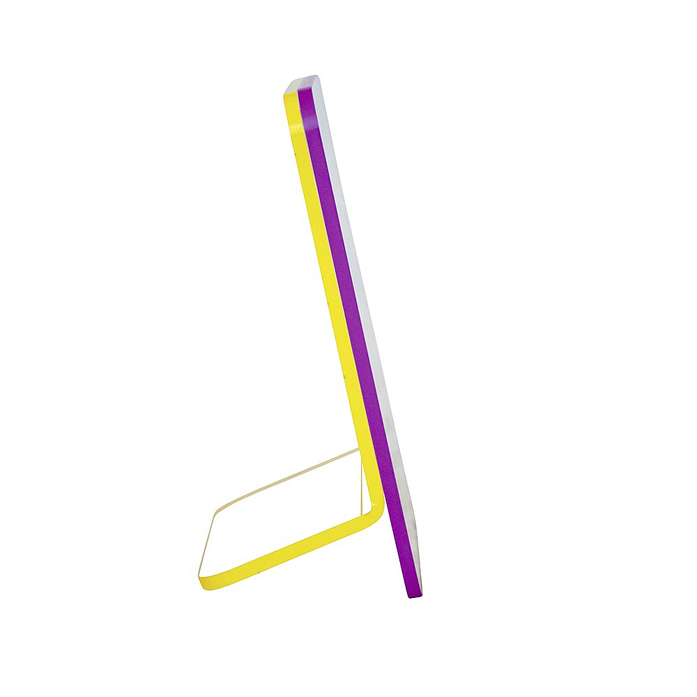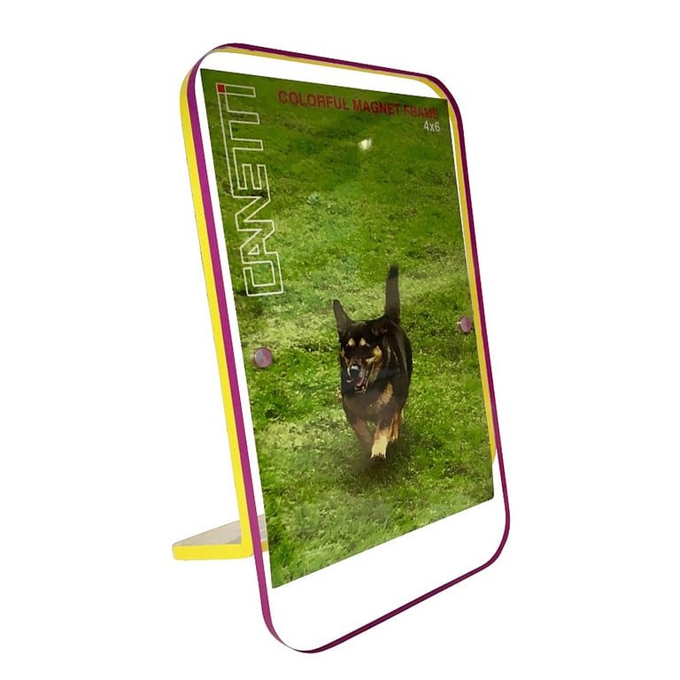 Main view Available in 7 color combinations Product Details Canetti Design® Colorful RECLINE MAGNET 4x6 FRAME Purple/Yellow by Canetti® — The Colorful RECLINE Magnet frame is composed of two thin acrylic panels, each one edged in a different bright color. The front panel is straight while the back panel has a bend, allowing it to stand on its own. Can be used in the vertical or horizontal position. Luxe quality "Magnet" is made in ultra-clear virgin acrylic. Your print will appear to float in borderless space, as if suspended in air! That's the power of this wonderful desk frame. Super strong pill-sized magnets securely and firmly sandwich your photo for this wonderful effect. To shop the entire line, click Canetti Museum Frames. Colorful RECLINE MAGNET 4x6 FRAME Purple/Yellow by Canetti® Model #756100790657 $23.95 1 available to ship, more on the way. In stock Can be shipped today [?] Your Price Match is Active Your request for a price of $0.00 for a minimum quantity of has been accepted. You have [time] left to purchase this item for $0.00 instead of $23.95 each. Find a Lower Price? We BEAT All Authorized Retailers [?] FEATURESDisplays:5"x7"Material:Acrylic | ResinFinish:Purple, Clear, YellowOccasion:Baby shower, Birthday, Bon voyage, Business & office, Congratulations, Corporate gifts, Group Events + Parties, Get well, Good luck, Grandparent`s Day, Home decorating, Housewarming, Inspirational, Mother`s Day, Sweet 16, Teacher gifts, Thank-Motivate-Reward, Celebrating Travels, Public Area DisplayStyle:Architectural, Contemporary, Hi-tech, Teens & tweens, Float Frames, Minimal, Easy-er to useOrientation:BothBrand:Canetti Design®Display Type:Desktop Only Approx. Overall Dimensions:5"x7" This item ships in its own box SHARE THIS ITEM Share on Facebook