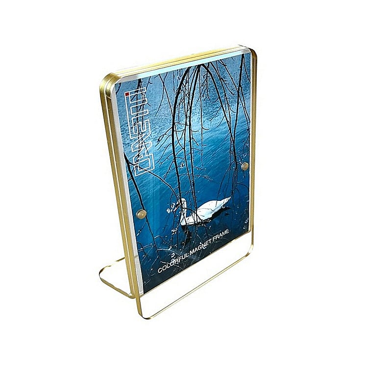 Main view Available in 10 color combinations Product Details Canetti Design® RECLINE MAGNET 5x7 FRAME GOLD-TRIM by Canetti® — The newest addition to Canetti's collection is the RECLINE Magnet frame. Composed of two thin acrylic panels, each one edged in a different color. The front panel is straight while the back panel has a bend, allowing it to stand on its own. Can be used in the vertical or horizontal position. Luxe quality "Magnet" is made in ultra-clear virgin acrylic. Your print will appear to float in borderless space, as if suspended in air! That's the power of this wonderful desk frame. Super strong pill-sized magnets securely and firmly sandwich your photo for this wonderful effect. To shop the entire line, click Canetti Museum Frames. RECLINE MAGNET 5x7 FRAME GOLD-TRIM by Canetti® Model #756100790838 $23.95 This item IS in stock and can be expected to ship 01/19/2026 Your Price Match is Active Your request for a price of $0.00 for a minimum quantity of has been accepted. You have [time] left to purchase this item for $0.00 instead of $23.95 each. Find a Lower Price? We BEAT All Authorized Retailers [?] FEATURESDisplays:5"x7"Material:Acrylic | ResinFinish:Clear, GoldOccasion:Baby shower, Birthday, Bon voyage, Business & office, Congratulations, Corporate gifts, Group Events + Parties, Get well, Good luck, Grandparent`s Day, Home decorating, Housewarming, Inspirational, Mother`s Day, Sweet 16, Teacher gifts, Thank-Motivate-Reward, Celebrating Travels, Public Area DisplayStyle:Architectural, Contemporary, Hi-tech, Teens & tweens, Float Frames, Minimal, Easy-er to useOrientation:BothBrand:Canetti Design®Display Type:Desktop Only Approx. Overall Dimensions:5"x7" This item ships in its own box SHARE THIS ITEM Share on Facebook