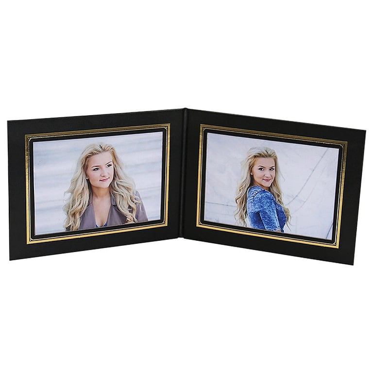 TAP™ PRESIDENTIAL Double 7x5 Black leatherette stock photo frame w/gold foil border (sold in 10's) —