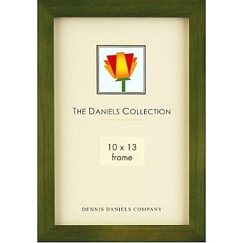 Main view Corner detail Back view Product Details Dennis Daniels® GALLERY WOODS Green-stained 10x13 hardwood by Dennis Daniels® — Daniels' solid wood frame with glare resistant glazing is elegant and easy to live with. Finely finished oak stained in a very modern green.Constructed of hardwood with tailed corners and exact fitting back. Moulding edge is ½" wide. Dual easel back for portrait or landscape tabletop display. Glare resistant glass lens.Quality crafted by Dennis Daniels®. This is a classic style at a great price.See Related Items on bottom right of this page for other colors and sizes of this piece. GALLERY WOODS Green-stained 10x13 hardwood by Dennis Daniels® Model #782680014828 List $22.50 You pay $18.95 In stock Ships next business day [?] Your Price Match is Active Your request for a price of $0.00 for a minimum quantity of has been accepted. You have [time] left to purchase this item for $0.00 instead of $18.95 each. Find a Lower Price? We BEAT All Authorized Retailers [?] FEATURESDisplays:10"x13"Material:Wood (full grain)Finish:GreenOccasion:Congratulations, Thank-Motivate-Reward, Business & office, Corporate gifts, Home decorating, Teacher gifts, Team & coach gifts, Celebrating TravelsStyle:Classic, Bold Colors, Contemporary, Minimal, TraditionalOrientation:BothBrand:Dennis Daniels® This item ships in its own box SHARE THIS ITEM Share on Facebook