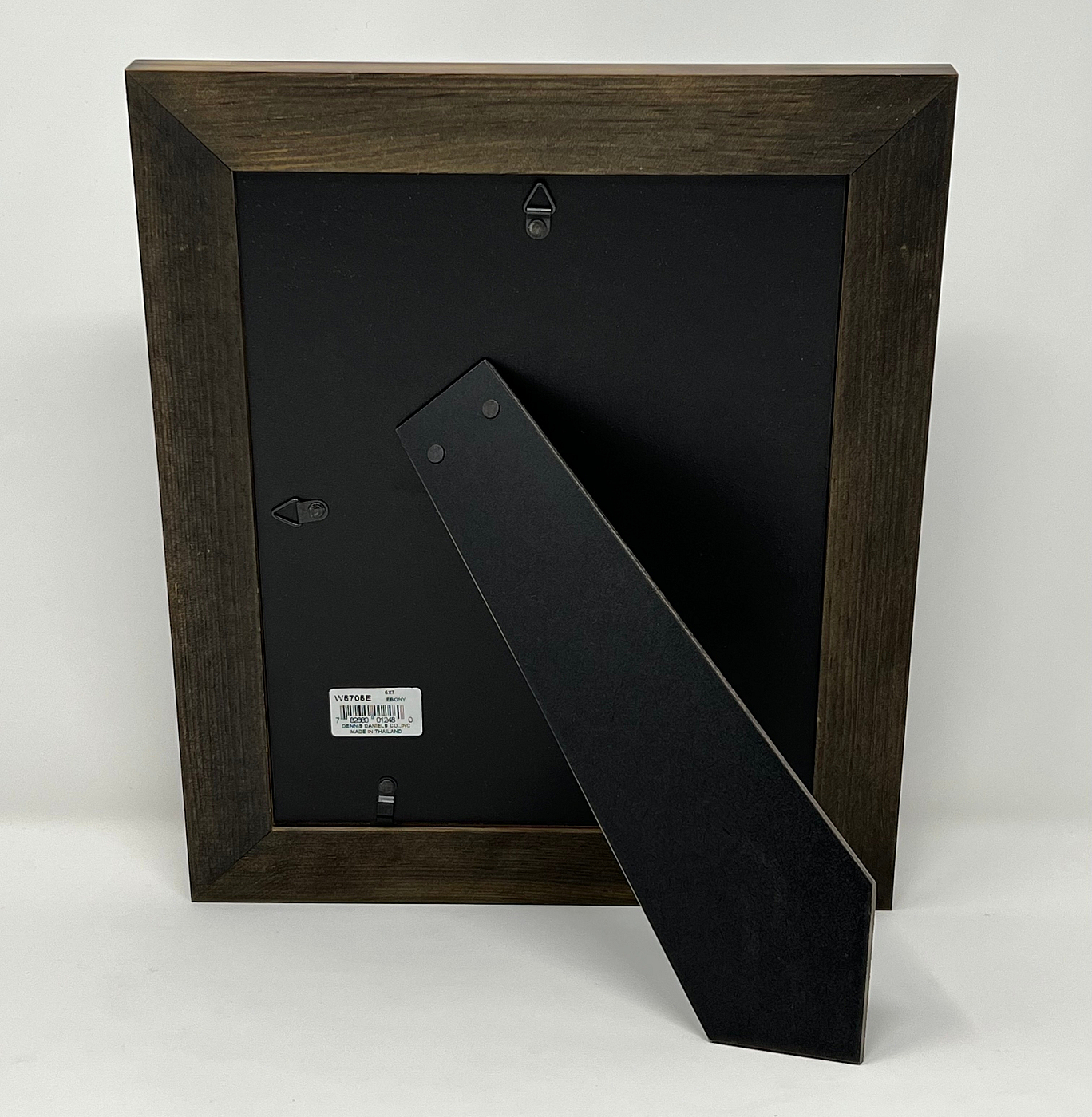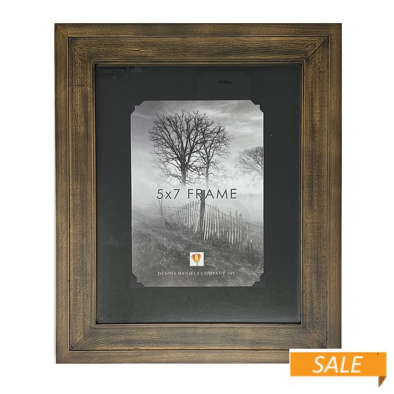 Main view Product Details Dennis Daniels® Black-washed Wood w/Black Photo Corners 5x7 frame by Dennis Daniels® — Blacked oak finish with hand routing surrounds the black matting and stylized 'photo corner' insert.This picture frame holds a 5"x7" print with the special mat; 8"x10" without mat. Dual hardboard back easel for landscape or portrait tabletop display. Glass glare resistant lens. Recessed wall mounts for easy hanging. 100% archival and acid-free matting and backboard.Crafted by Dennis Daniels® or California, the beautiful frame people of California. Black-washed Wood w/Black Photo Corners 5x7 frame by Dennis Daniels® Model #782680012480 List $24.50 You pay $16.95 In stock Ships next business day [?] Your Price Match is Active Your request for a price of $0.00 for a minimum quantity of has been accepted. You have [time] left to purchase this item for $0.00 instead of $16.95 each. Find a Lower Price? We BEAT All Authorized Retailers [?] FEATURESDisplays:5"x7"Material:Wood (full grain)Finish:Gray/Charcoal, BlackOccasion:Home decorating, Corporate giftsStyle:Antique, Rustic/Lodge, Distressed - WeatheredOrientation:BothBrand:Dennis Daniels®Display Type:Desktop or Wall This item ships in its own box SHARE THIS ITEM Share on Facebook