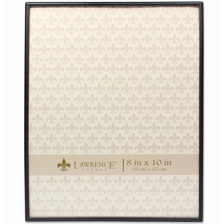 Main view Product Details Lawrence Frames® Matte SIMPLY BLACK Aluminum 8x10 frame — More a table accessory than a frame, the narrow border and clean lines makes a very minimalist statement.The style has a beautiful dual easel back for either portrait or landscape display. Wall mount for easy hanging. Glare resistant glass lens. Black moulding edge is ½" all-around. By Lawrence®, fine frames for generations. Matte SIMPLY BLACK Aluminum 8x10 frame Model #751148070089 List $28.50 You pay $22.95 In stock Ships next business day [?] Your Price Match is Active Your request for a price of $0.00 for a minimum quantity of has been accepted. You have [time] left to purchase this item for $0.00 instead of $22.95 each. Find a Lower Price? We BEAT All Authorized Retailers [?] FEATURESDisplays:8"x10"Material:AluminumFinish:BlackOccasion:Anniversary, Birthday, Business & office, Celebrating Travels, Corporate gifts, Good luck, Home decorating, Mother`s Day, Retirement, Teacher gifts, Team & coach gifts, Thank-Motivate-Reward, WeddingStyle:Classic, Minimal, Traditional, Contemporary, SophisticatedOrientation:BothBrand:Lawrence Frames®Display Type:Desktop or Wall This item ships in its own box SHARE THIS ITEM Share on Facebook