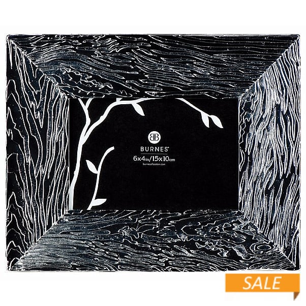 Product Details Burnes of Boston® Silver ADINA Wood-Grain Metallic by Burnes of Boston — Constructed with beautiful cast work, this 4x6 tabletop frame elegantly brings the countryside indoors. The Burnes of Boston® Foil Flora Collection elegantly entwines the intricacies of nature with the elegance of silver and bronze metallics. Inspired by Alder branches, Rowan leaves, Mahonia shrubs and other beautiful species. Every piece was designed and crafted with attention to nature's subtle details. Glare resistant glass lens. Easel back tabletop display. SendAFrame proudly carries the Burnes of Boston® collection at the lowest everyday price - guaranteed! Click here to see the entire Burnes home and photo family of great items. Silver ADINA Wood-Grain Metallic by Burnes of Boston Model #013208373753 List $10.00 You pay $9.95 In stock Can be shipped today [?] Your Price Match is Active Your request for a price of $0.00 for a minimum quantity of has been accepted. You have [time] left to purchase this item for $0.00 instead of $9.95 each. Find a Lower Price? We BEAT All Authorized Retailers [?] Approx. Overall Dimensions:8"x9/16"x10" This item ships in its own box SHARE THIS ITEM Share on Facebook