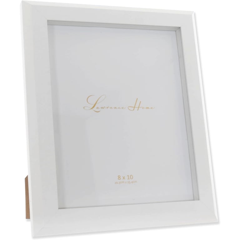 Main view Product Details Lawrence Frames® WHITE TANDEM 8x10 frame — Quality composite decorative picture frame with white angled wood grain finish. Easy open turn button black velvet backing makes it simple to insert your photo. Includes hangers for wall mounting and easel backing for tabletop display. Glare resistant glass lens. By Lawrence® WHITE TANDEM 8x10 frame Model #751148090926 List $23.00 You pay $17.95 This item IS in stock and can be expected to ship 02/11/2026 Your Price Match is Active Your request for a price of $0.00 for a minimum quantity of has been accepted. You have [time] left to purchase this item for $0.00 instead of $17.95 each. Find a Lower Price? We BEAT All Authorized Retailers [?] FEATURESDisplays:8"x10"Material:Wood (mdf/engineered)Finish:WhiteOccasion:Business & office, Home decoratingStyle:Contemporary, Rustic/LodgeOrientation:BothBrand:Lawrence Frames®Display Type:Desktop or Wall This item ships in its own box SHARE THIS ITEM Share on Facebook