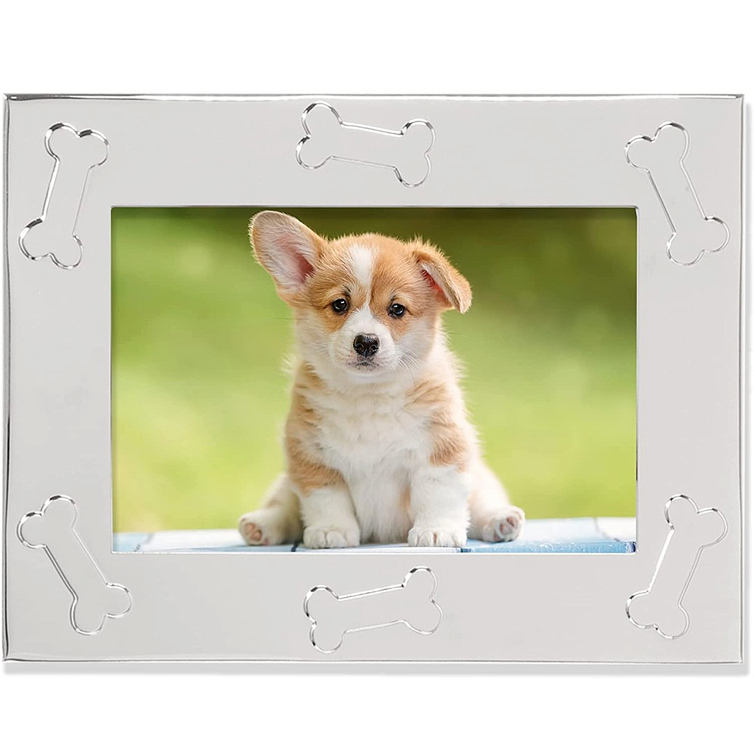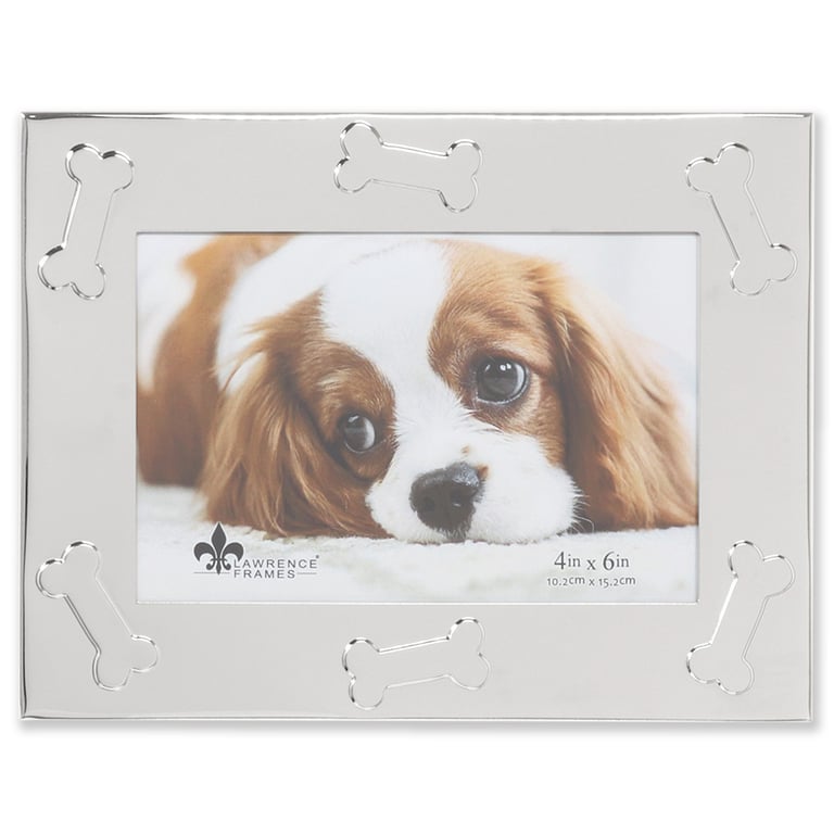 Main view Product Details Lawrence Frames® Silver DOG BONE 4x6 frame — Celebrate your favorite pup with this special DOG BONE frame Adorable polished silver metal dog picture frame High quality heavy weight metal picture frame has a raised bone print design Easy open black velvet slide in backing Dual Easel for vertical or horizontal table top display High definition glass to protect your photo By Lawrence Frames®, crafting fine frames for generations. Silver DOG BONE 4x6 frame Model #751148083911 List $23.00 You pay $17.95 In stock Can be shipped today [?] Your Price Match is Active Your request for a price of $0.00 for a minimum quantity of has been accepted. You have [time] left to purchase this item for $0.00 instead of $17.95 each. Find a Lower Price? We BEAT All Authorized Retailers [?] FEATURESDisplays:4"x6"Material:SilverplateFinish:SilverOccasion:Pet LoveStyle:Animals & pets, ContemporaryOrientation:BothBrand:Lawrence Frames®Display Type:Desktop or Wall This item ships in its own box SHARE THIS ITEM Share on Facebook