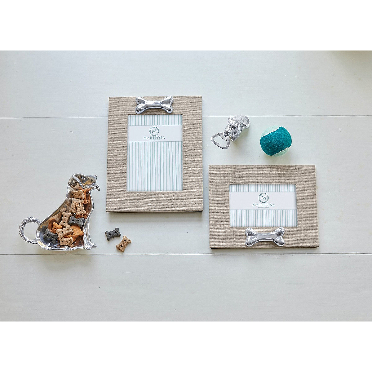 Main view Product Details Mariposa® Natural Linen w/Dog Bone Icon 4x6 Frame by Mariposa® — What would we do without our favorite furry friends? Mariposa's Natural Linen with Dog Bone 4x6 Frame is a great tribute to the ones who keep a smile on our face daily. Keep for yourself or make someone you love super happy! Natural Linen w/Dog Bone Icon 4x6 Frame by Mariposa® Mariposa® WINTER CELEBRATION Savings - Buy More / Save More * Add this item to your cart for the full details of this promotion. Conditions may apply. Model #808813184364 $85.00 1 available to ship, more on the way. In stock Ships next business day [?] Your Price Match is Active Your request for a price of $0.00 for a minimum quantity of has been accepted. You have [time] left to purchase this item for $0.00 instead of $85.00 each. Find a Lower Price? We BEAT All Authorized Retailers [?] FEATURESDisplays:4"x6"Material:ClothFinish:Natural, SilverOccasion:Birthday, Celebrating Travels, Congratulations, Friendship, Home decorating, Housewarming, Thank-Motivate-Reward, Weekend Host Gifts, Pet LoveStyle:Animals & pets, Contemporary, Eco-Friendly-Recycled, Sports & leisure, BohoOrientation:Horizontal OnlyBrand:Mariposa®Display Type:Desktop Only Approx. Overall Dimensions:6 5/8"x8 5/8"x11/16" This item ships in its own box SHARE THIS ITEM Share on Facebook