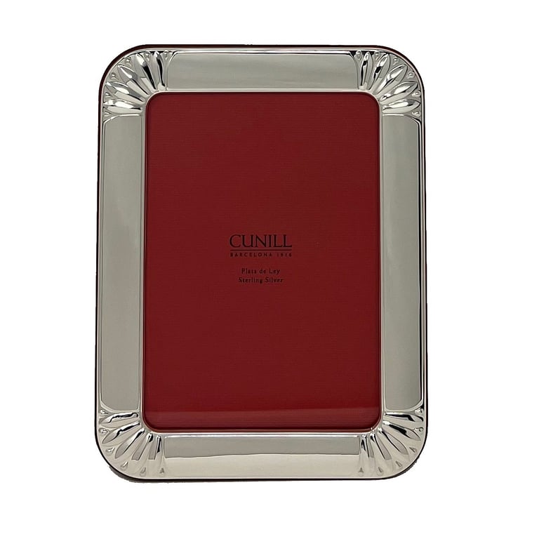 Main view Product Details Cunill® Silver Fine Sterling Silver ALEXANDRIA 5x7 by Cunill® Barcelona — The Cunill® Alexandria in .925 sterling silver combines a contemporary corner treatment with a very high polished look.A special corner "fan" motif is hand tooled into the sterling frame.The Cunill quality is unsurpassed - even to the backing which is a fitted wood piece to easily lock-in your photos. (see Item views for more images). Note the signature sterling lozenge latches - a hallmark of Cunill since 1916. Each piece is debossed on front with the family mark and .925 (sterling silver), proudly giving signature to the quality this 100+ year old company has earned.Cunill sterling never needs polishing - it is finely lacquered to keep it tarnish free. Comes in signature red Cunill gift box.Crafted in - and imported from - Cunill Barcelona Spain. To view the complete collection visit Cunill® Barcelona Fine Sterling Silver ALEXANDRIA 5x7 by Cunill® Barcelona Model #655089065169 List $180.00 You pay $165.95 In stock Ships next business day Your Price Match is Active Your request for a price of $0.00 for a minimum quantity of has been accepted. You have [time] left to purchase this item for $0.00 instead of $165.95 each. Find a Lower Price? We BEAT All Authorized Retailers [?] FEATURESDisplays:5"x7"Material:Sterling Silver (fine)Finish:SilverOccasion:Anniversary, Bar & Bat Mitzvah, Congratulations, Engagement, Retirement, Wedding, Baptism + Christening, CommunionStyle:Art Deco, Contemporary, OrnateOrientation:BothBrand:Cunill® SilverDisplay Type:Desktop Only This item ships in its own box SHARE THIS ITEM Share on Facebook