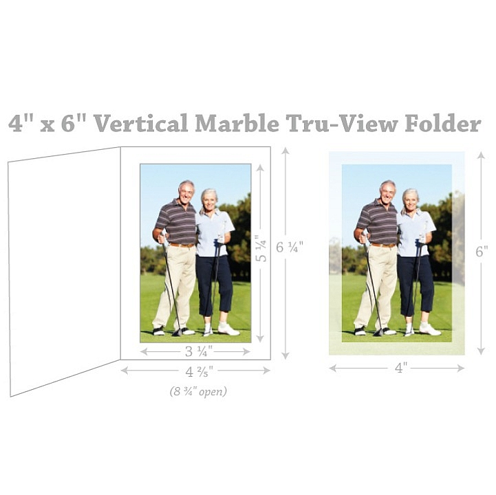 Marble Tru-View event folders hold one vertical photo on the inside to protect it from dust & fingerprints during delivery and transport, making it a great way to package and present photos to customers.