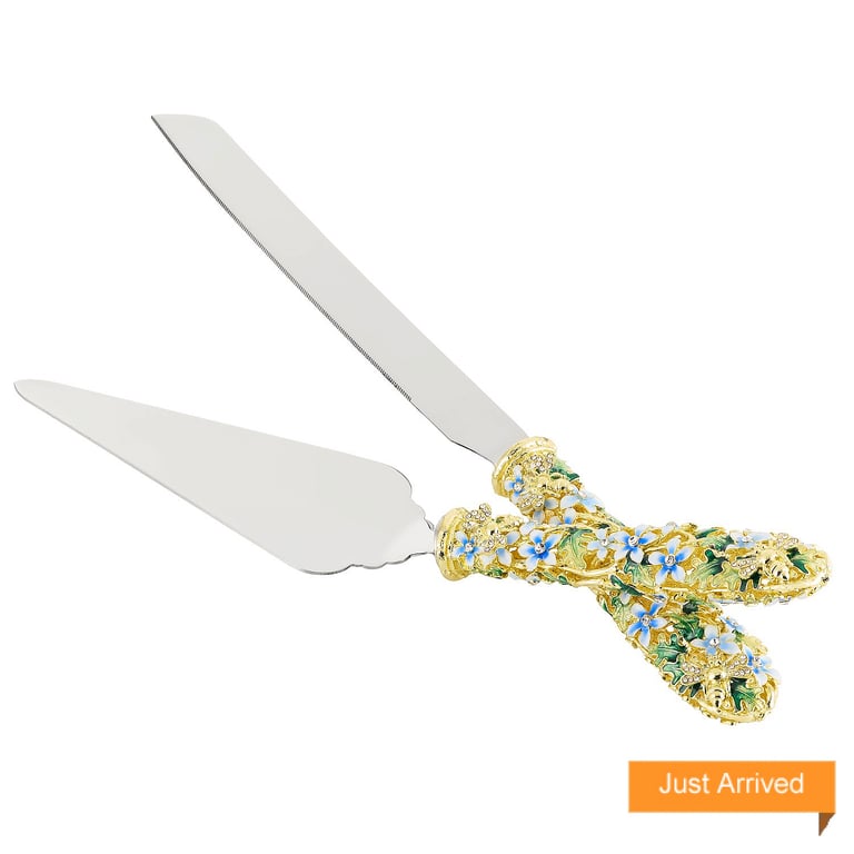 Main view Product Details Olivia Riegel DAPHNE GOLD-VERMEIL DESSERT SERVING SET by Olivia Riegel® — Celebrate garden allure with this bee and floral patterned dessert serving set. Gold finished pewter with intricate blue and green hued hand-enameling and hand-set clear European crystals. Tarnish resistant. Engravable stainless steel blades. Hand wash. Signature luxury gift box included. Knife: 13.5”L x 1”W | Server: 11.5"L x 2.75"W An original design from the Olivia Riegel® collection. FeaturesKnife: 13.5”L x 1”W | Server: 11.5"L x 2.75"W DAPHNE GOLD-VERMEIL DESSERT SERVING SET by Olivia Riegel® OLIVIA RIEGEL® FALL CELEBRATION SAVINGS - Buy More / Save More * Add this item to your cart for the full details of this promotion. Conditions may apply. Model #850054966636 $330.00 This item IS in stock and can be expected to ship 11/25/2025 Your Price Match is Active Your request for a price of $0.00 for a minimum quantity of has been accepted. You have [time] left to purchase this item for $0.00 instead of $330.00 each. Find a Lower Price? We BEAT All Authorized Retailers [?] FEATURESMaterial:Jewels/crystalFinish:Blue(Light), Gold, Green, WhiteOccasion:Anniversary, Birthday, Engagement, Friendship, Home decorating, Housewarming, Romantic, WeddingStyle:Bold Colors, OrnateBrand:Olivia RiegelDisplay Type:not applicable n/a This item ships in its own box SHARE THIS ITEM Share on Facebook