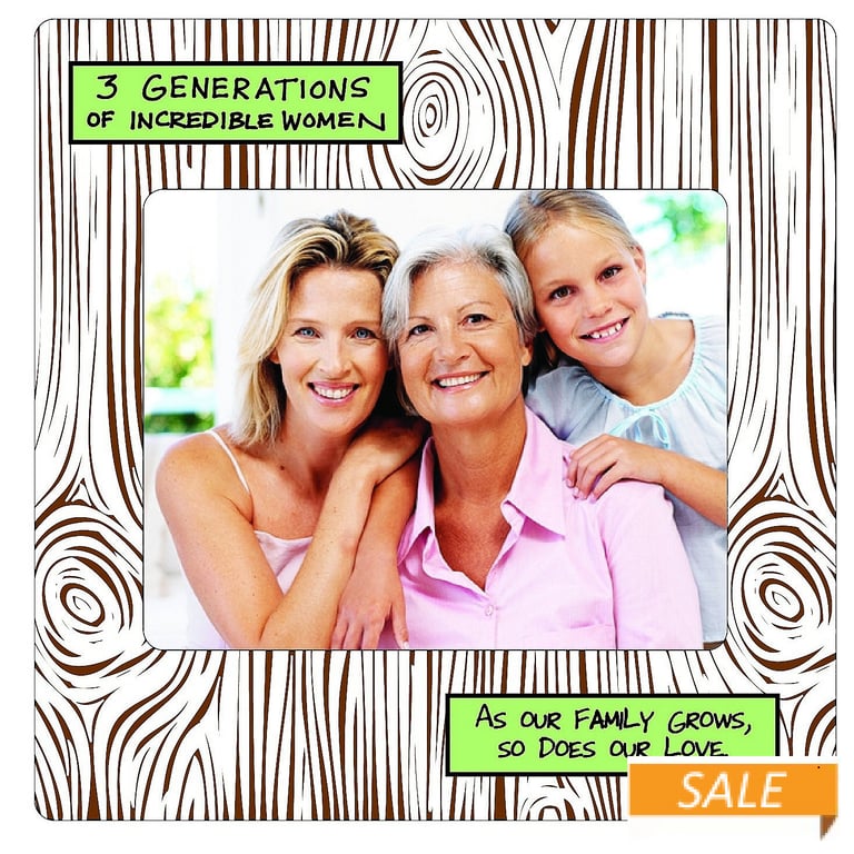 Product Details Enesco 3 GENERATIONS OF EXCEPTIONAL WOMEN by Our Name is Mud® — 3 Generations OF INCREDIBLE WOMENAS OUR FAMILY GROWS, SO DOES OUR LOVE This colorful hand-painted ceramic frame is a great way to show off Grandma - Mom - Daughter. Frame displays a 5" x 4" photo behind its glare resistant lens.Easel back for horizontal tabletop display only. Designed and crafted by Our Name is Mud®. 3 GENERATIONS OF EXCEPTIONAL WOMEN by Our Name is Mud® Model #045544787475 List $16.50 You pay $7.90 In stock Ships next business day [?] Your Price Match is Active Your request for a price of $0.00 for a minimum quantity of has been accepted. You have [time] left to purchase this item for $0.00 instead of $7.90 each. Find a Lower Price? We BEAT All Authorized Retailers [?] FEATURESDisplays:4"x5"Material:CeramicFinish:Brown, WhiteOccasion:Grandparent`s Day, Inspirational, Mother`s DayStyle:Contemporary, Words & whimsy, Sentiments | ready made, Unique | LimitedOrientation:Horizontal OnlyBrand:EnescoDisplay Type:Desktop Only Approx. Overall Dimensions:6"x6"x3/8" This item ships in its own box SHARE THIS ITEM Share on Facebook