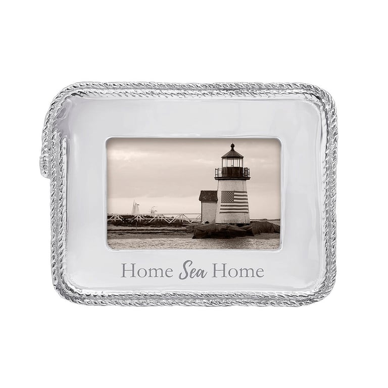 Main view Gift Box (sample) Product Details Mariposa® HOME SEA HOME Statement 6x4 Frame by Mariposa® — Home Sweet Home or Home Sea Home? Frame a photo to display your favorite place by the sea in the Home Sea Home Rope 4x6 Frame. Handcrafted from 100% recycled, buffed-until-brilliant aluminum. Beautifully boxed in a Mariposa Gift Box Shop the entire collection: Mariposa® Design Collection Important Note: Mariposa items are hand engraved. Your piece may differ slightly from the photo. HOME SEA HOME Statement 6x4 Frame by Mariposa® Model #808813195681 $84.00 only 1 left, order soon. In stock Can be shipped today [?] Your Price Match is Active Your request for a price of $0.00 for a minimum quantity of has been accepted. You have [time] left to purchase this item for $0.00 instead of $84.00 each. Find a Lower Price? We BEAT All Authorized Retailers [?] FEATURESDisplays:4"x6"Material:AluminumFinish:SilverOccasion:Birthday, Friendship, Home decorating, Housewarming, Inspirational, Thank-Motivate-Reward, Weekend Host GiftsStyle:Contemporary, Eco-Friendly-Recycled, Nautical & Shore, Santa Fe, Sophisticated, Sports & leisure, Words & whimsy, Sentiments | ready made, BohoOrientation:Horizontal OnlyBrand:Mariposa®Display Type:Desktop Only This item ships in its own box SHARE THIS ITEM Share on Facebook